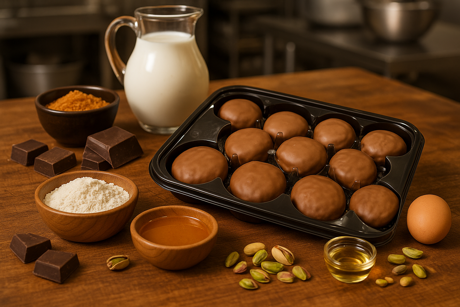 Zartes Gebäck, verfeinert mit Honig, aromatischem Orangensaft und ausgewählten Gewürzen, verschmilzt mit einer köstlichen Füllung und einer feinen Schokoladenummantelung. Pistazienstückchen runden den einzigartigen Geschmack ab und sorgen für ein unverwechselbares Aroma.